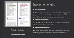 Dentro del grupo de estudiantes se asignaron 2 casos que presentaban indicadores de algún trastorno del neurodesarrollo , para lo cual elaboraron un instrumento de evaluación que incluía la caracterización de cada uno de los trastornos del neurodesarrollo que se pueden presentar dentro del aula.